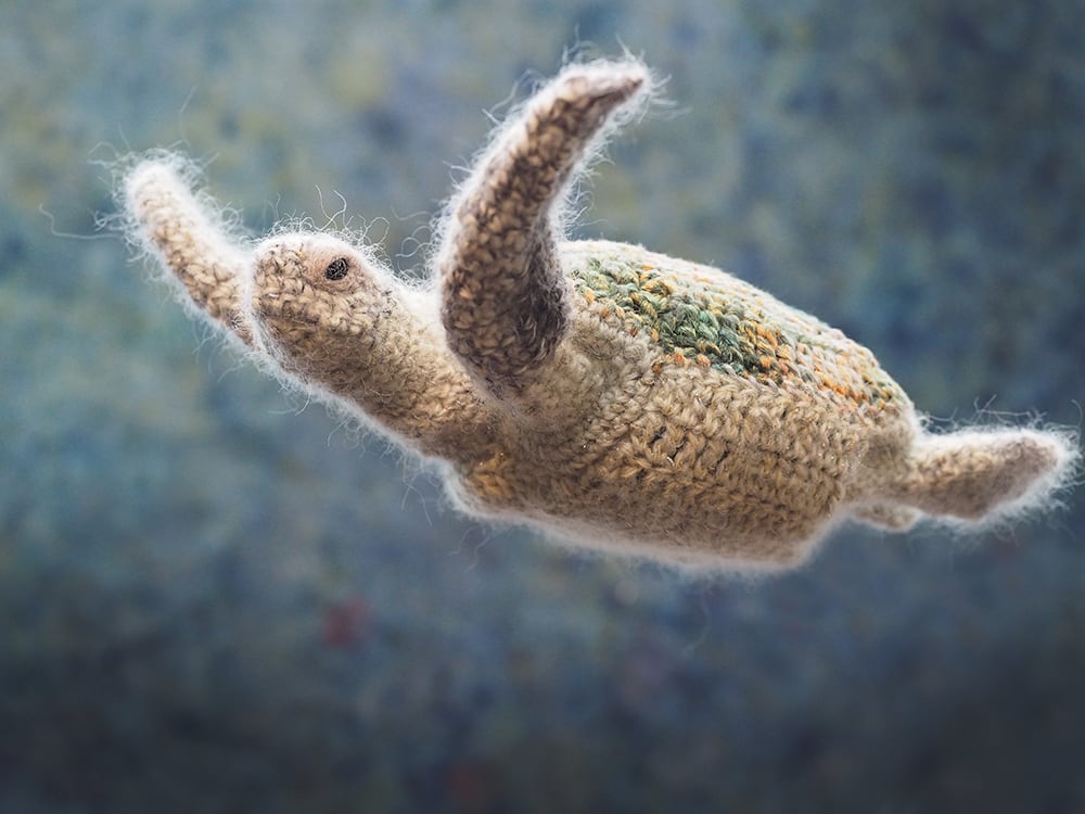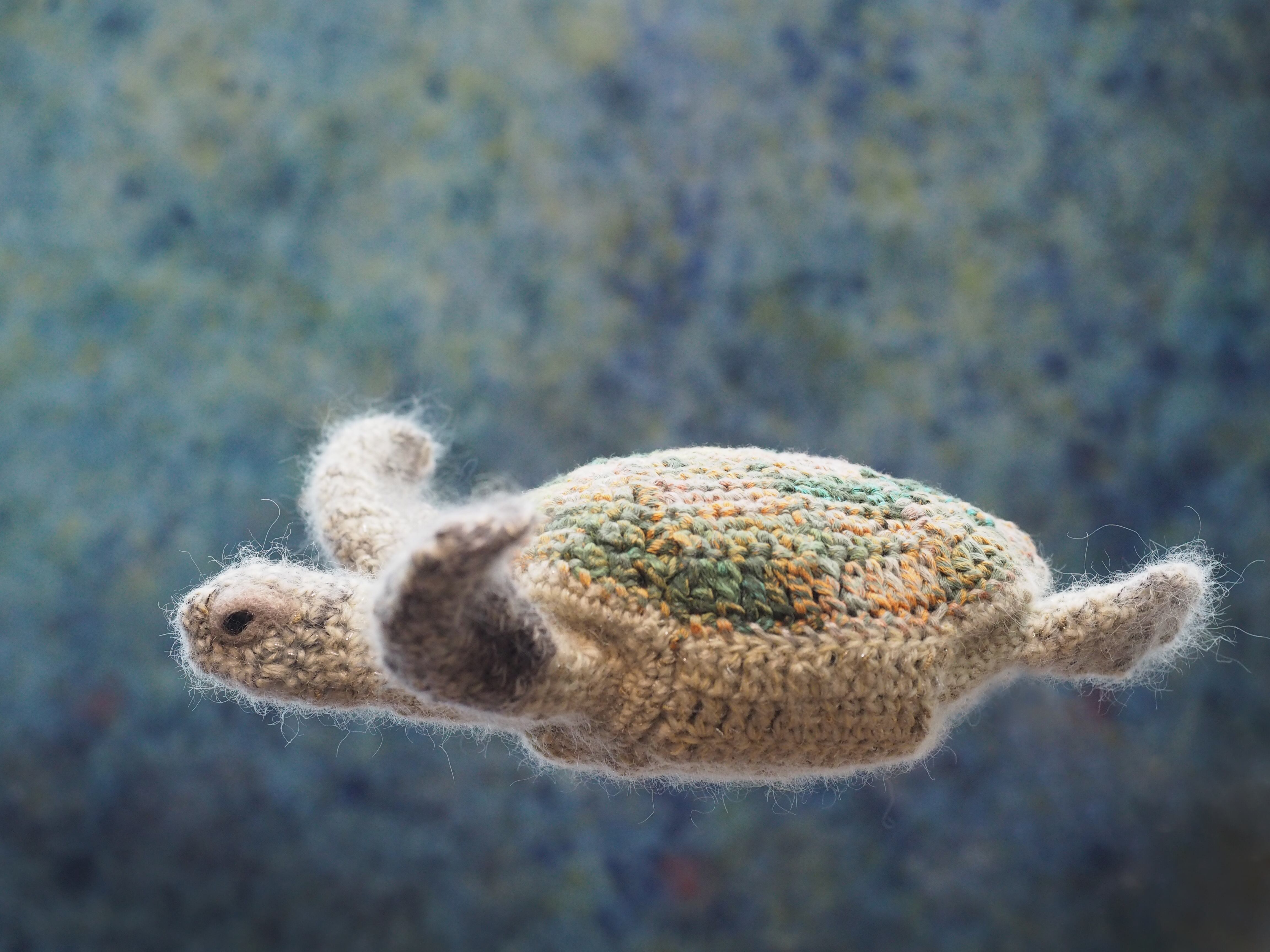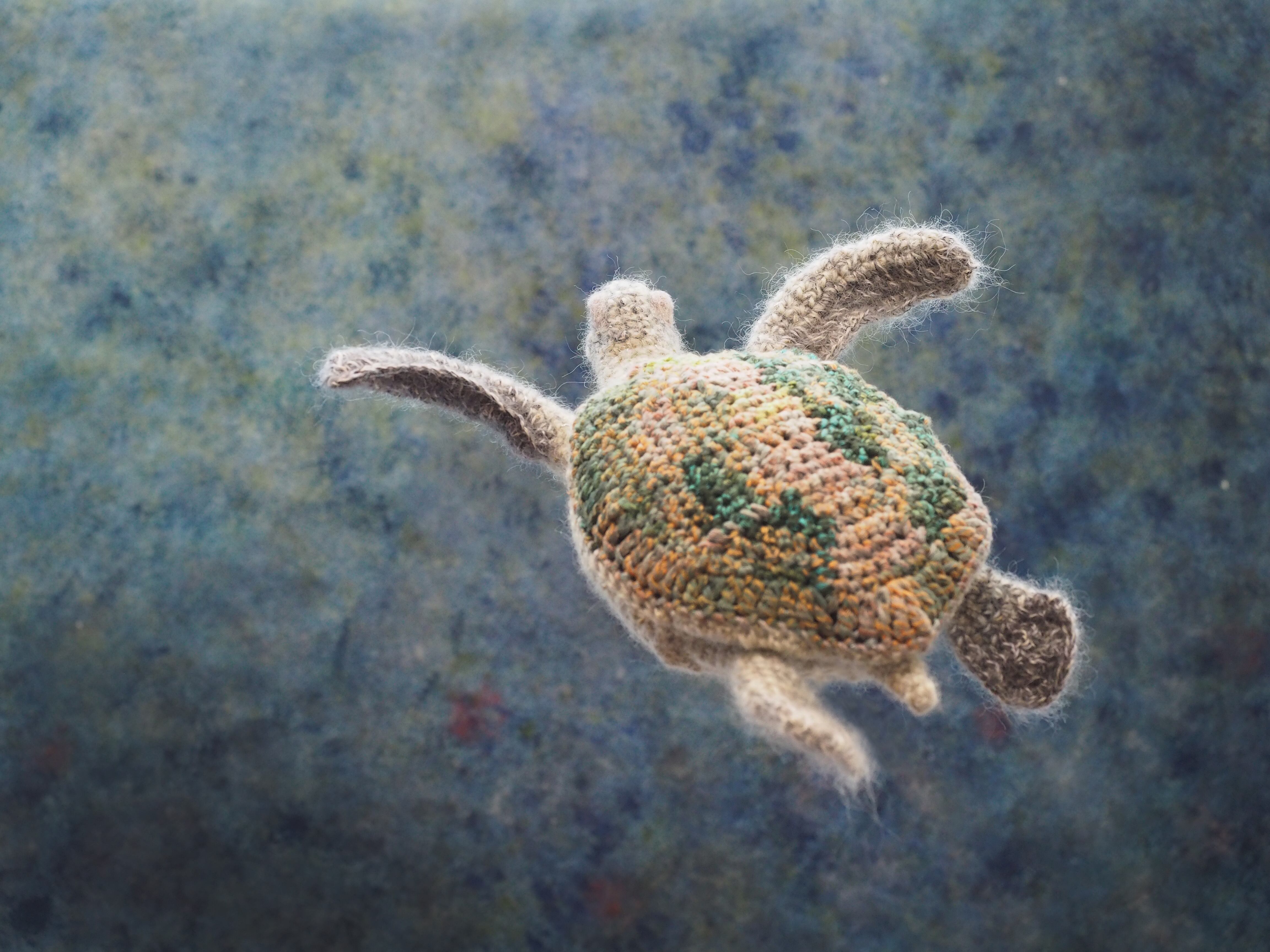 背中に乗ったら龍宮城に連れて行ってくれそうなカメ、をイメージして作りました。