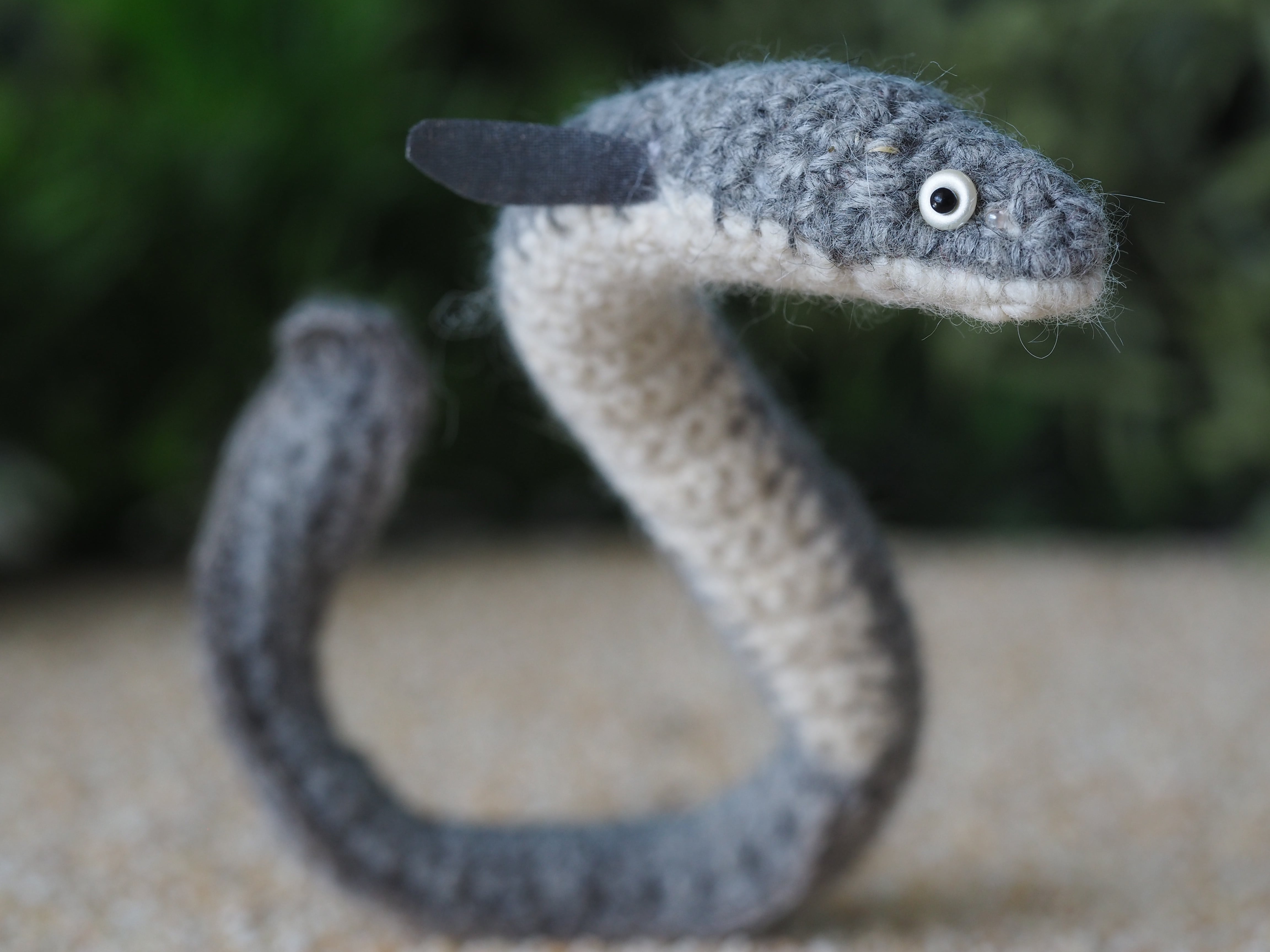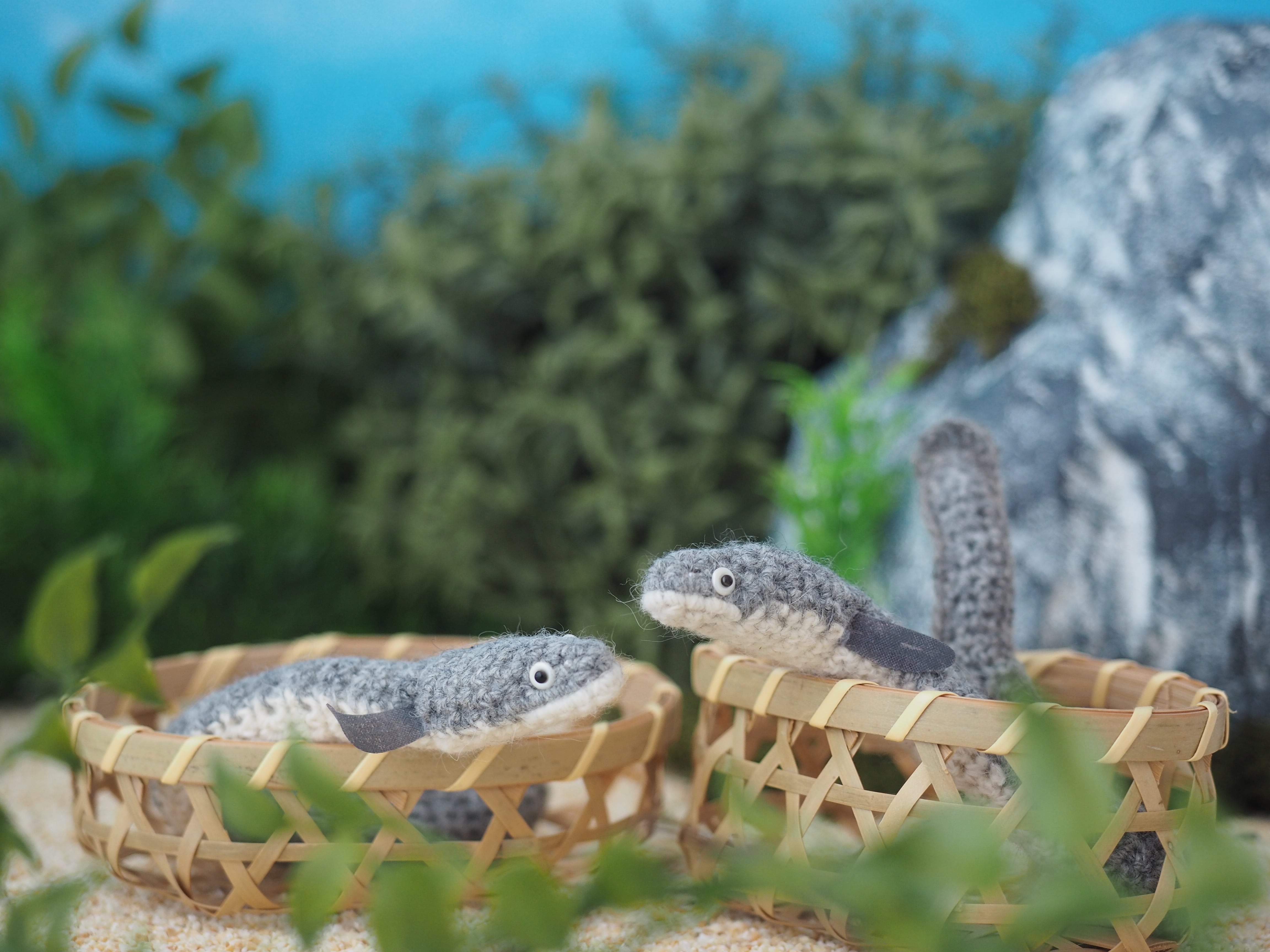 極細のアンゴラでウナギを編みました。