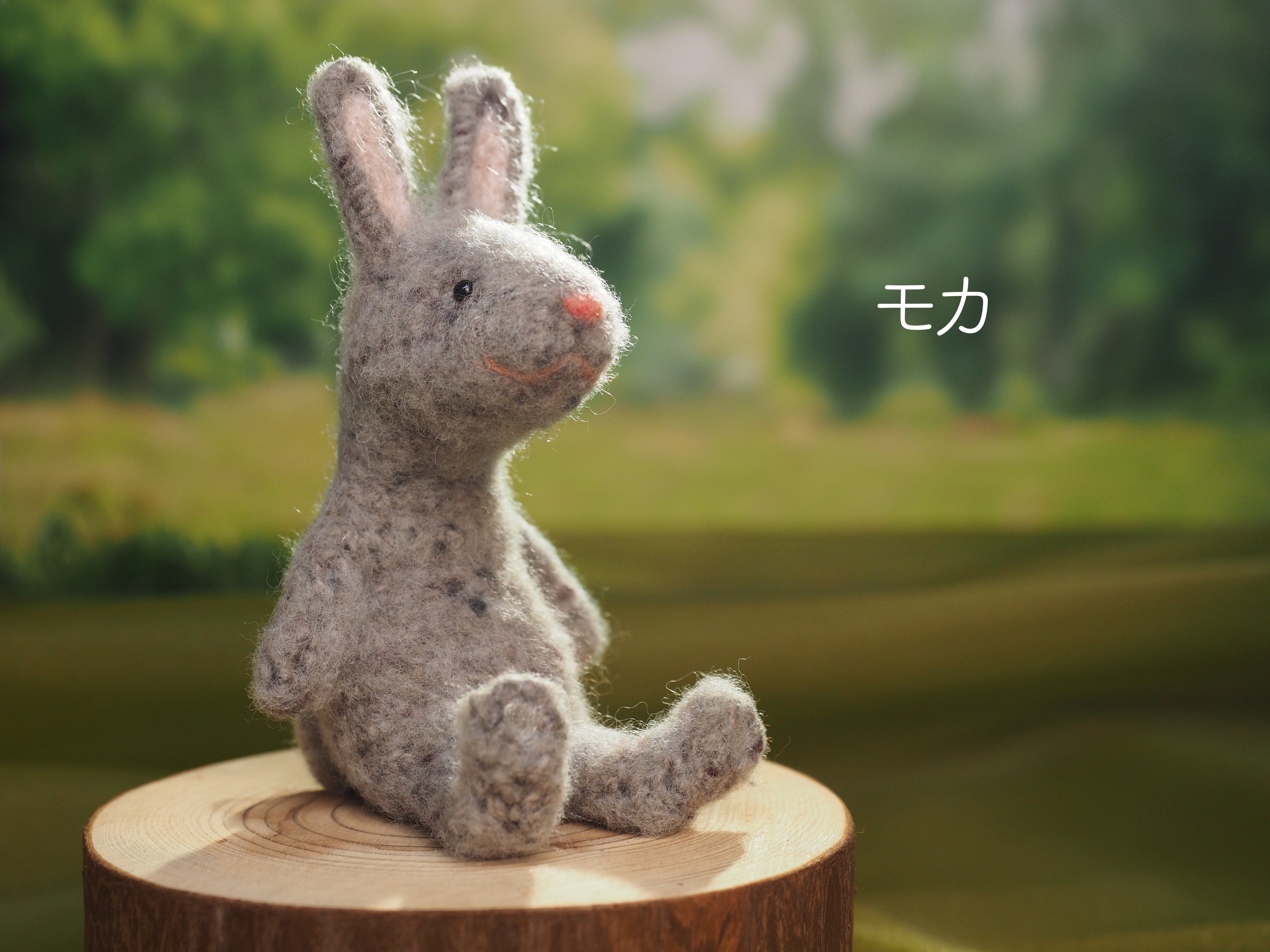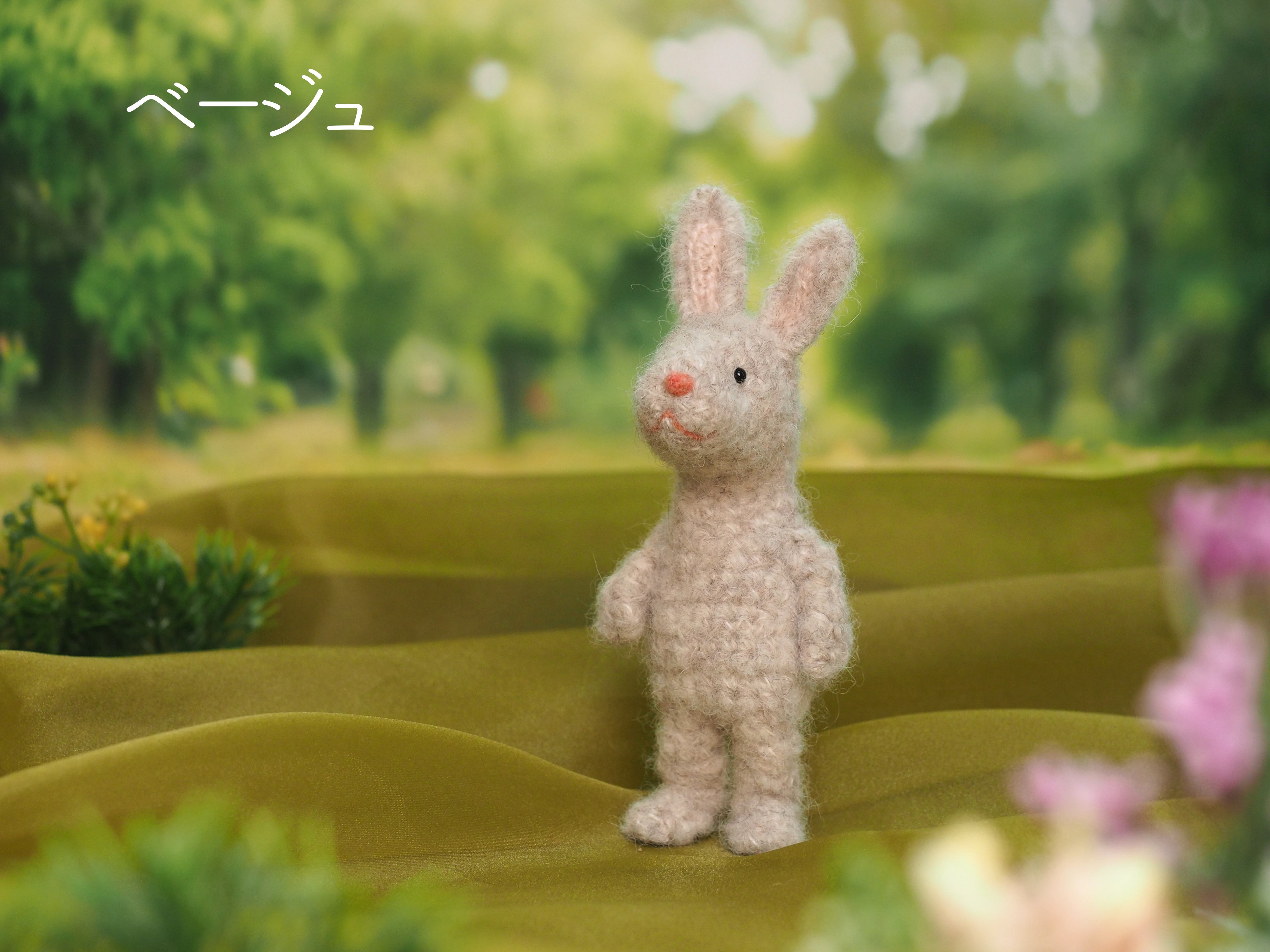 来年の干支のウサギを、いろんな色や質感の糸で編みました。